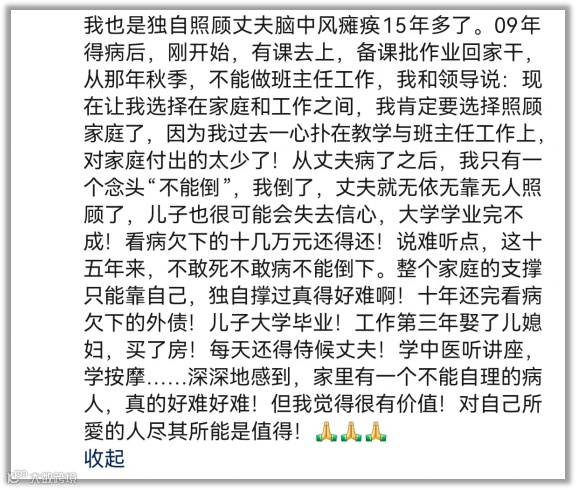 “还有,我自己都65了,谁能来照顾还在上班的我啊???”