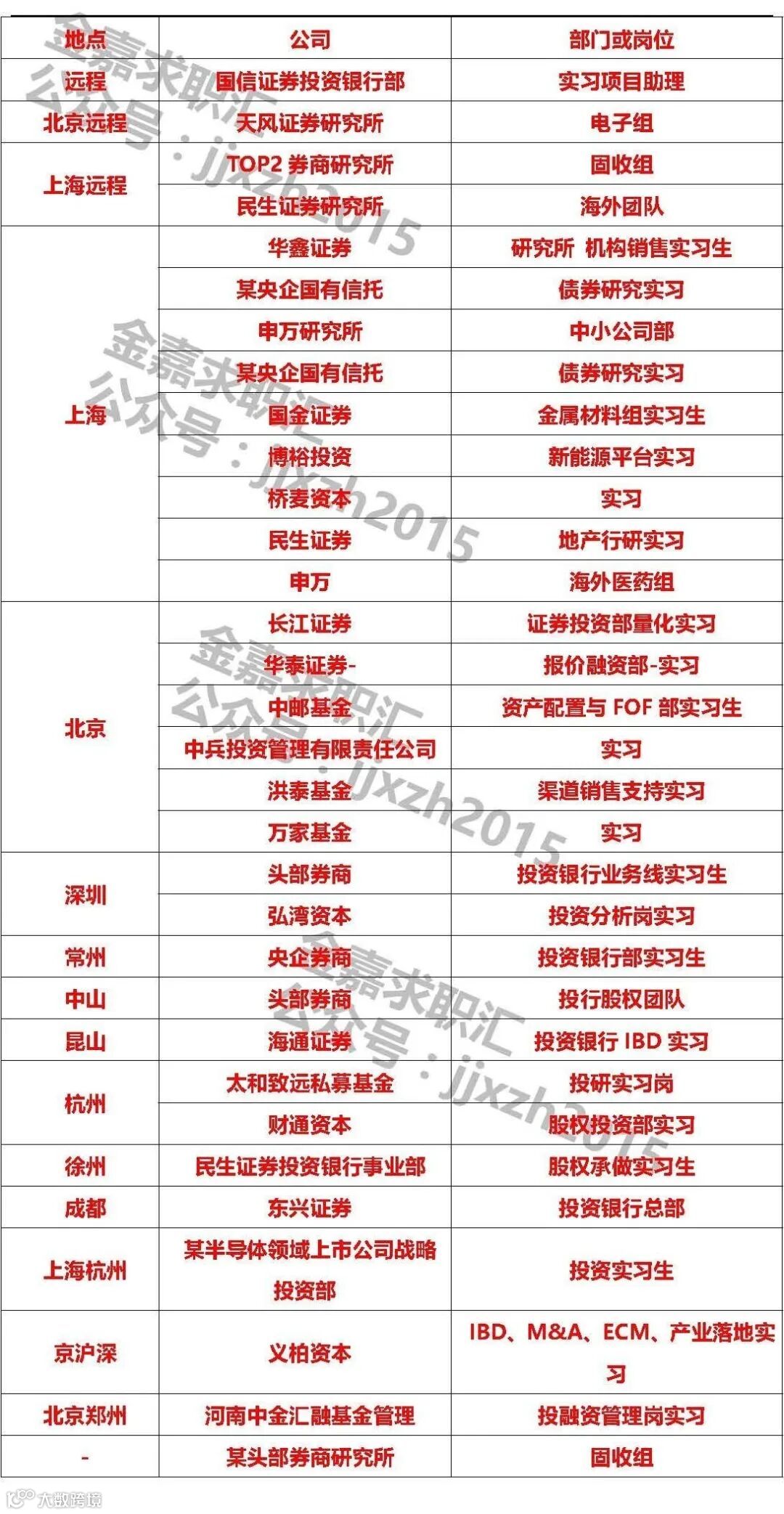 方向:IBD、M&A(北京、上海),不接受远程,有留用机会