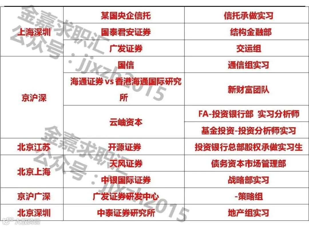(4)券商投行类相关实习经历优先;