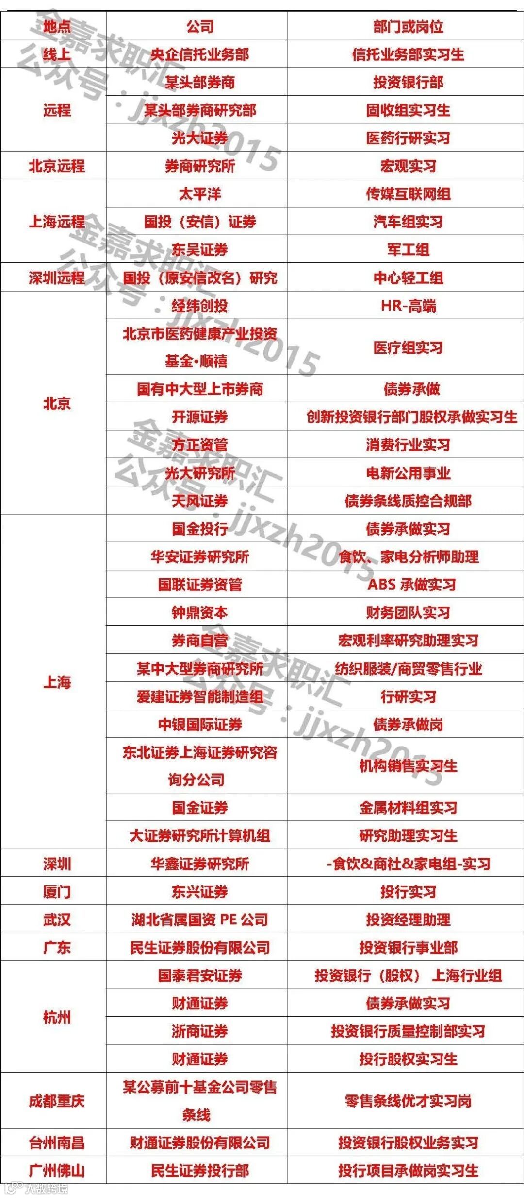 5、优先条件:通过CPA、法考或有投行、会计师事务所、律师事务所相关实习经历者优先;