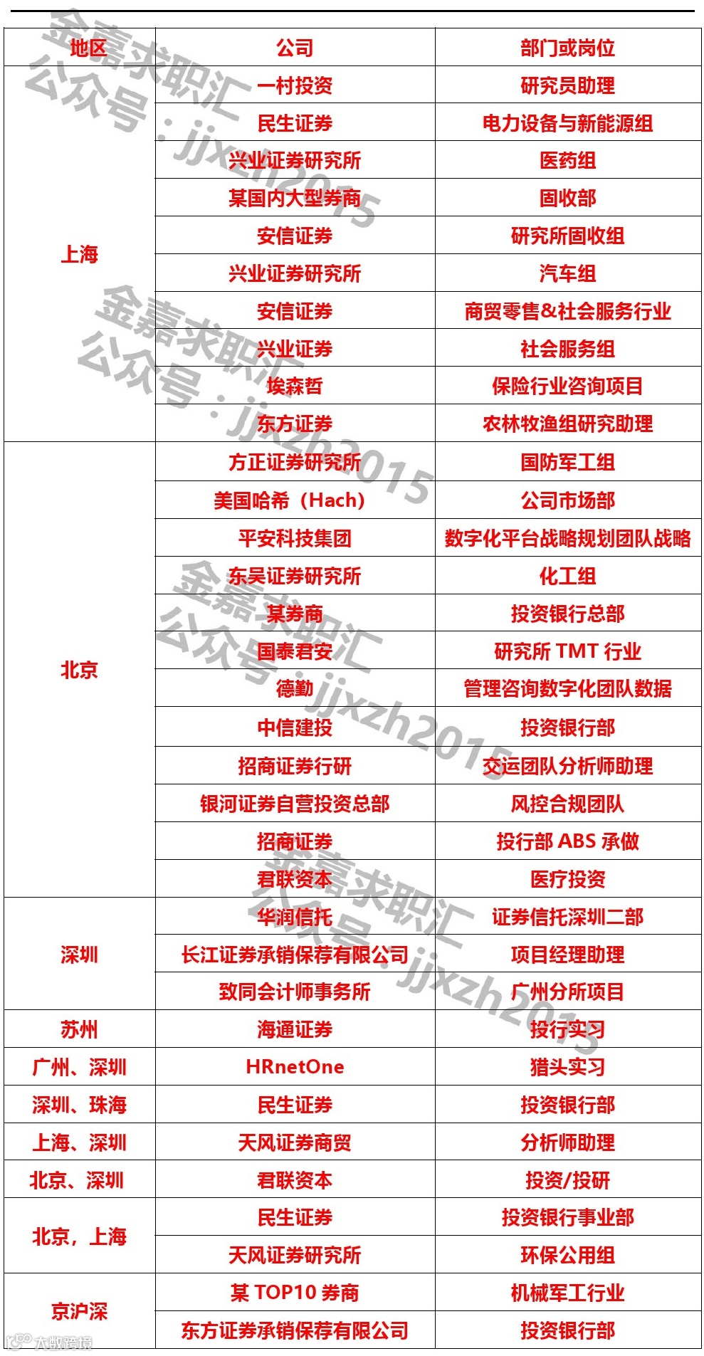 2、有理工金融复合背景的优先;有CFA/CPA/ACCA等资格证书的优先;有券商、基金公司投研实习经历的优先。