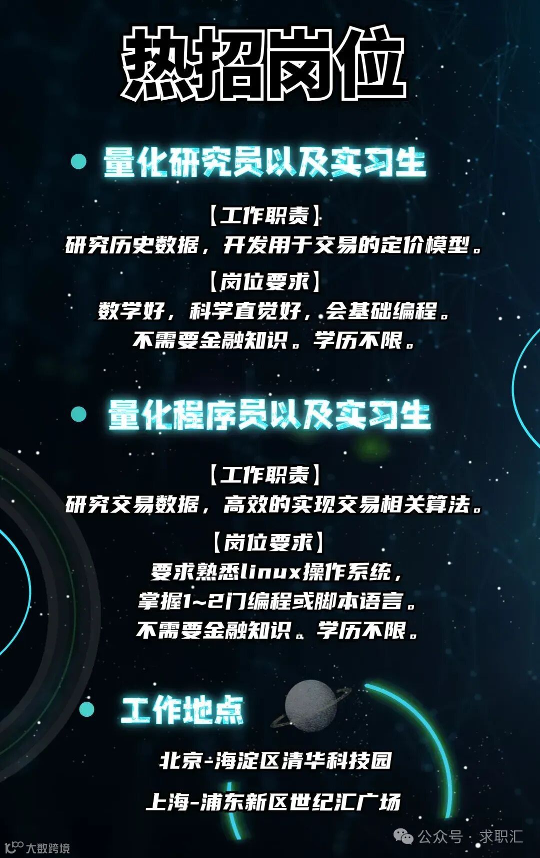 2.国内外知名大学金融、经济、财会、统计、数学、计算机科学、金融工程等与公司业务相关专业,原则上要求取得硕士研究生及以上学历;