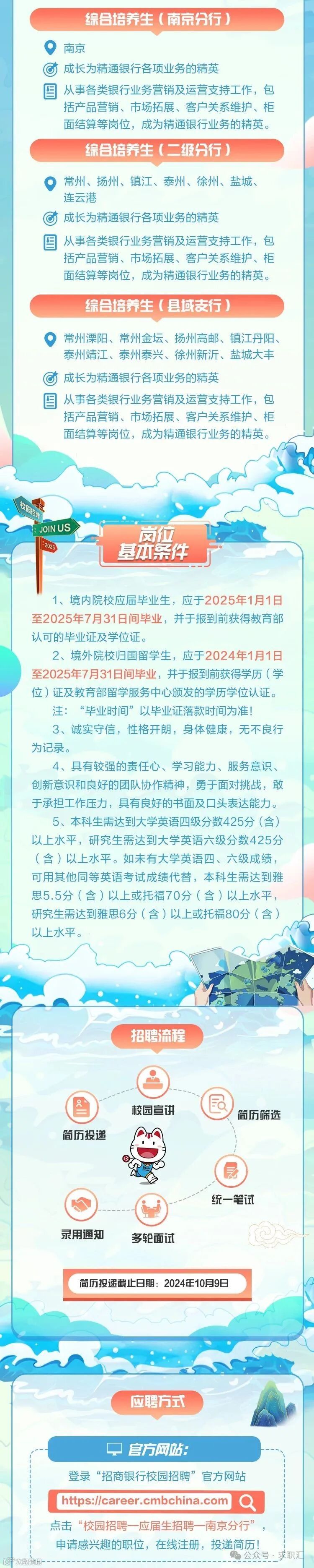 (1) 全日制本科及以上学历应届毕业生,专业不限,金融、经济、计算机专业优先。