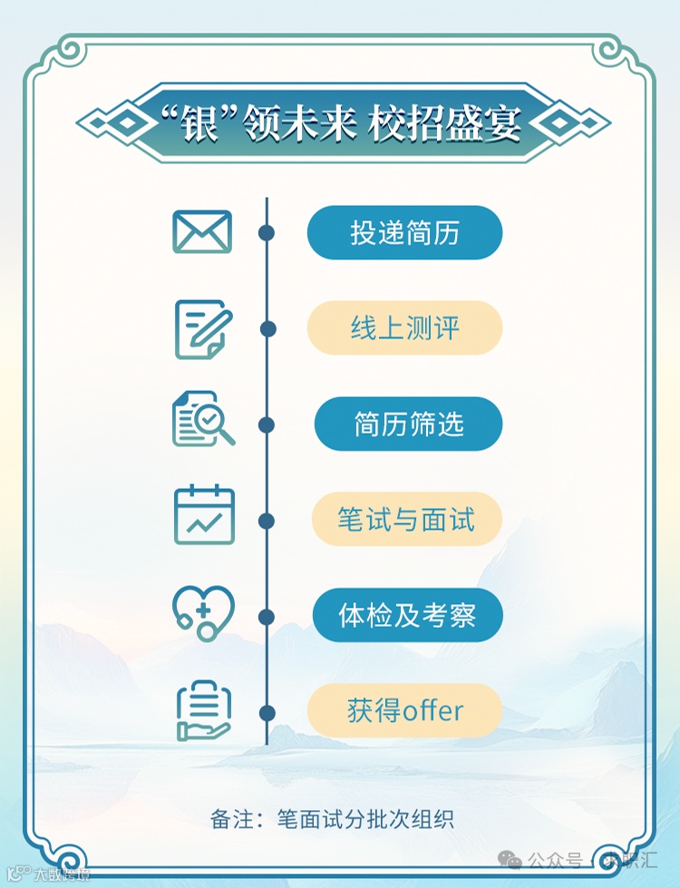 网上投递简历--简历筛选--笔试--面试--体检--录用签约等环节。