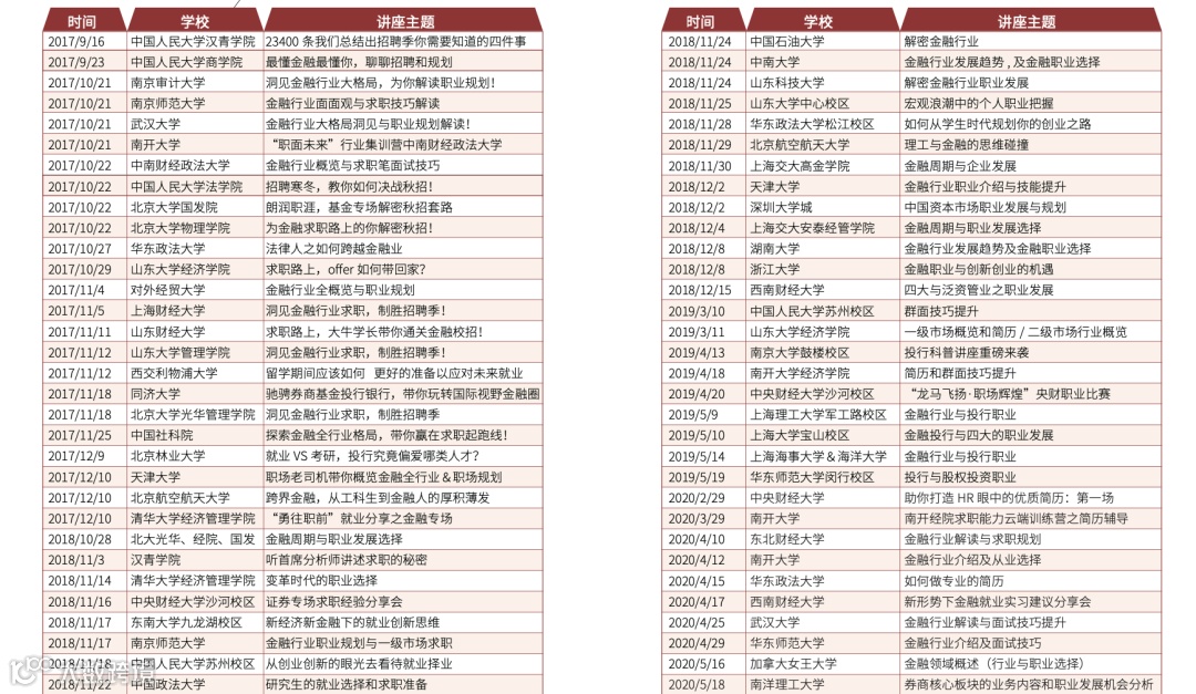 每一届的成员,都优先成为下一届成员的领路人导师,届届传承。除此之外,金融小伙伴每年一届的“万人讲座”全国高校毕业生金融求职分享会(点击进入详情)的嘉宾中,将近百分之六十出自领路人计划。