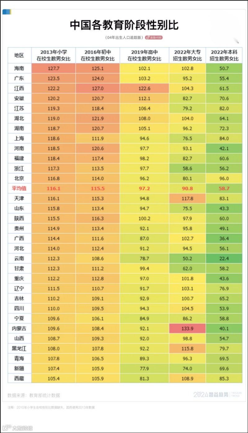说我国传统上存在的男性优势已经在很多方面转化为劣势,因为我们的男生学习上不太行了,体质上也挺糟的,心理上还不成熟,社会责任感还挺差劲的。