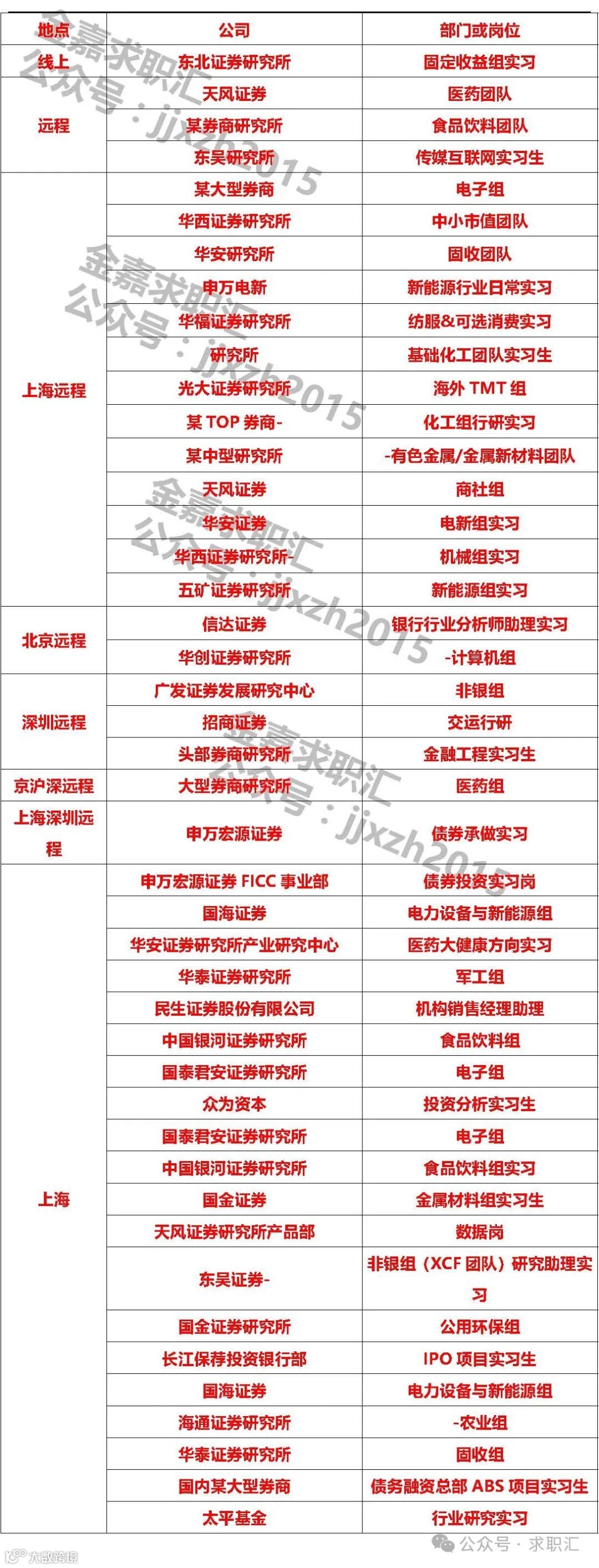 实习地点:上海、北京、深圳、杭州及线上