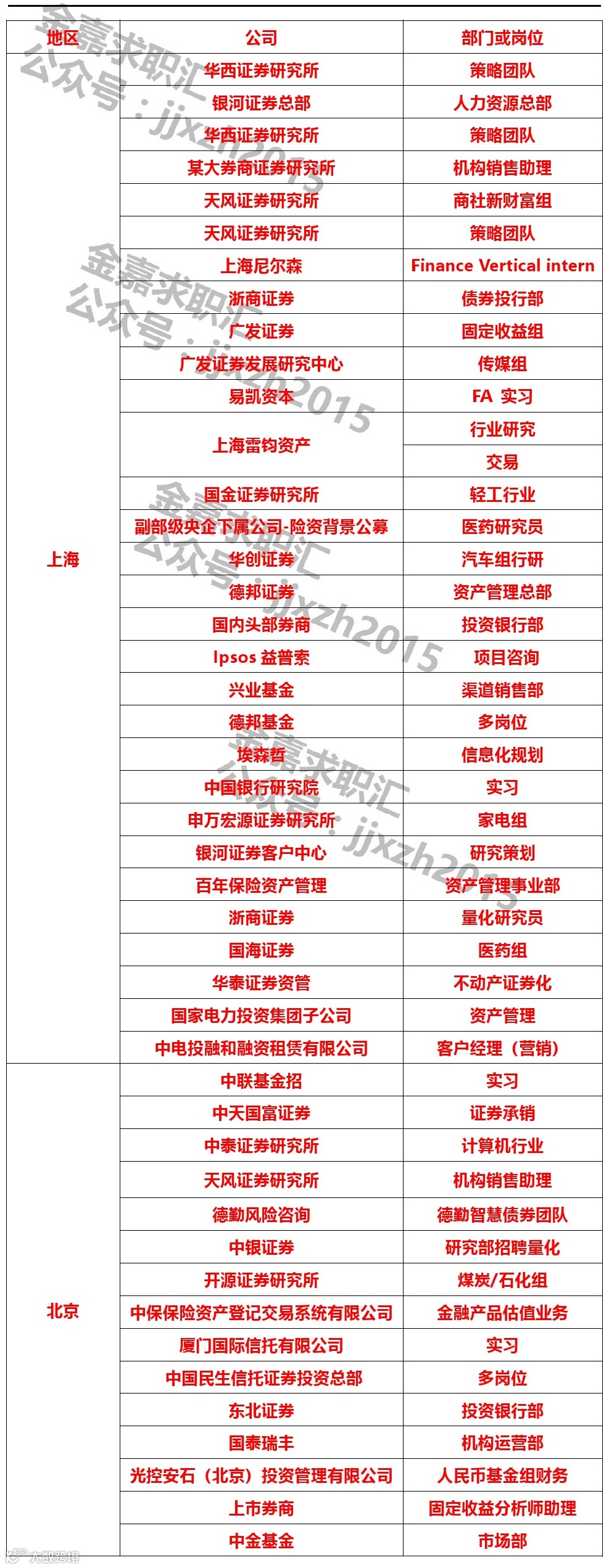 (5)拥有券商、会计师事务所、律师事务所实习经历的优先(重要);