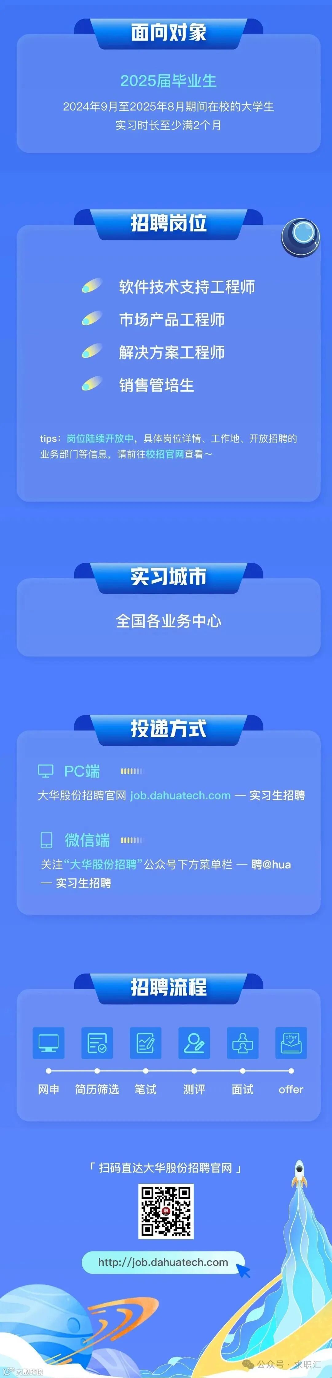 4、校招需经实习考察,实习期间能保证每周至少3个工作日在岗,并持续实习2个月以上;