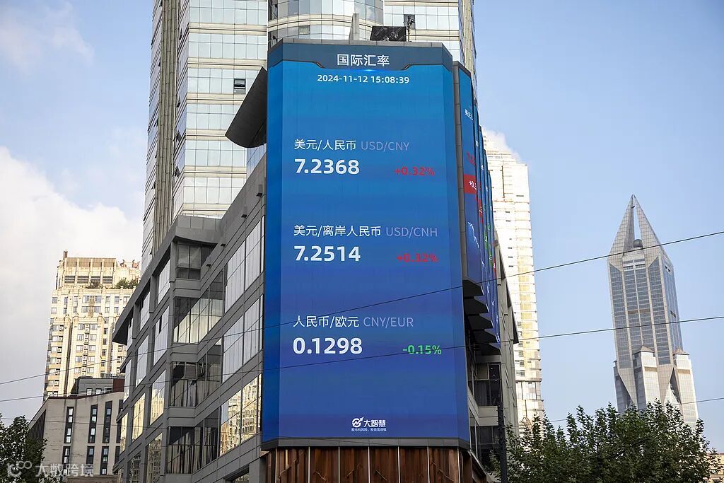 11月12日,人民币对美元中间价调贬141个基点,报7.1927,创2023年9月12日以来最低。