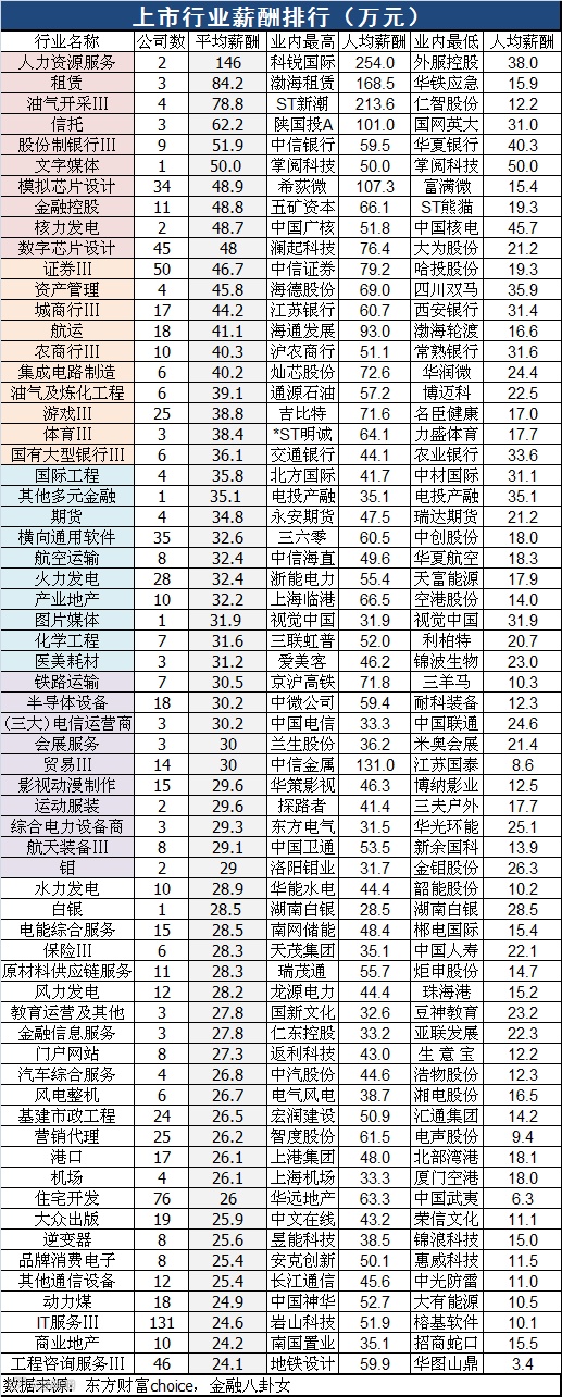 在五千多家A股上市公司中,有1208家公司人均薪酬都超过了24万。分行业看,按照申万三级行业分类,有65个行业的平均薪酬超过了24万: