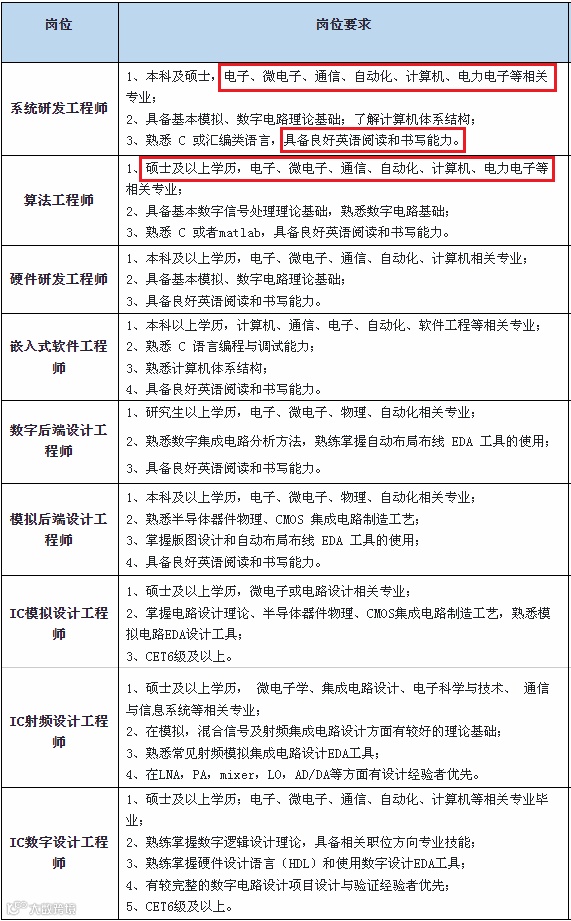另一方面,芯片设计行业对员工专业的要求并不低。翻开某家芯片公司的招聘要求看,虽然本科硕士都招,但是既要专业对口,又要英语好: