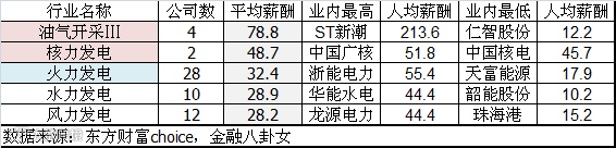另外,周鸿祎说的能源行业也是闷声发大财,油气开采和发电行业薪酬都很可观,尤其是核电,总共两家上市公司,一个人均四十几万,一个人均五十几万,去哪家都不会少挣: