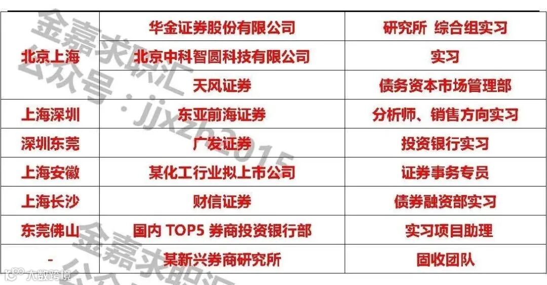 3、有在会计师事务所或券商投行部实习经验的优先,最重要的是人踏实靠谱。