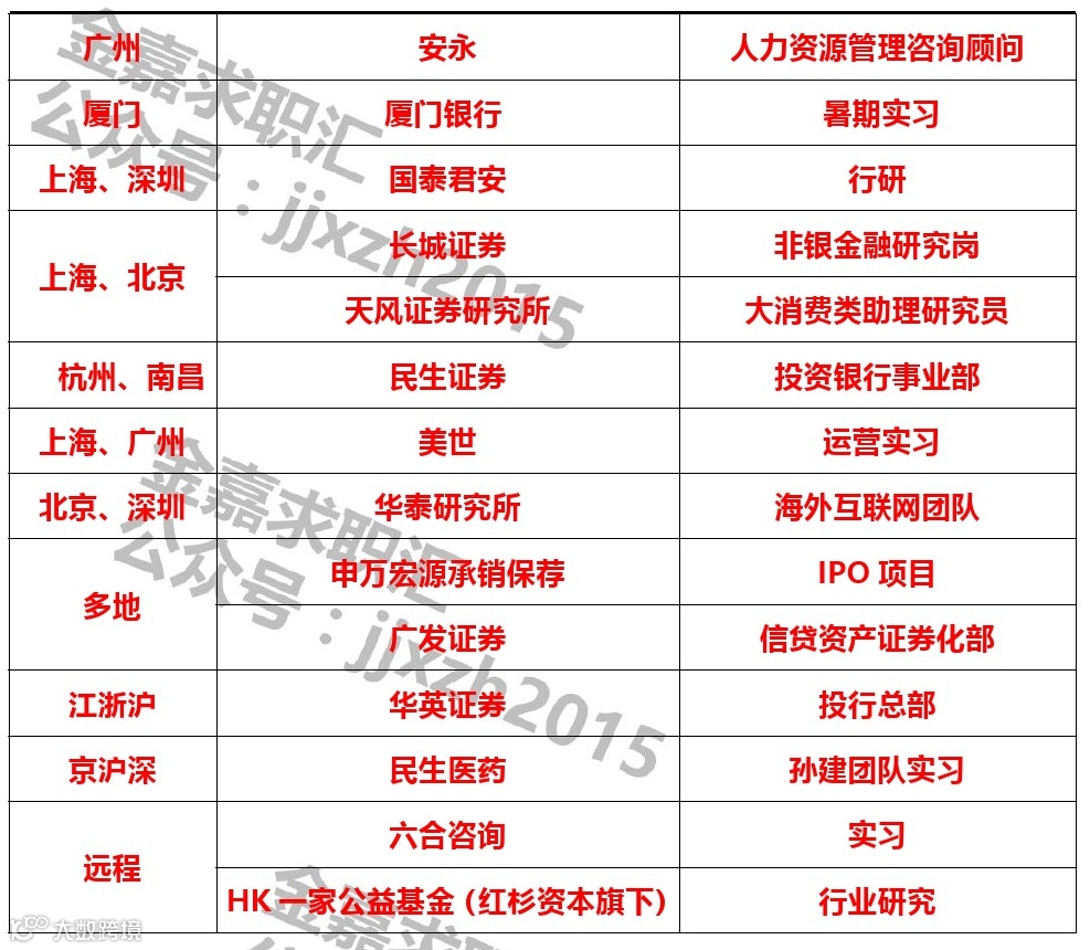 5、有券商投行或资管、律师事务所、信托公司相关实习经历优先考虑;
