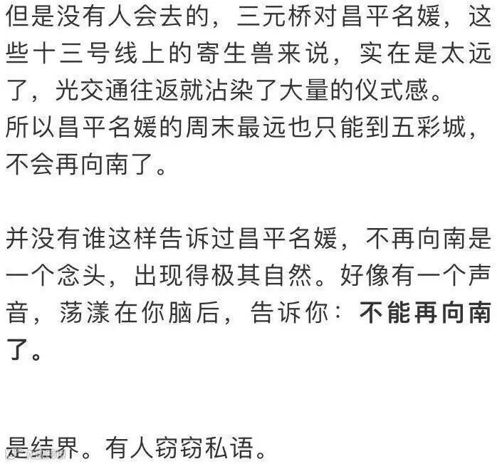 两年前的爆款文章《昌平名媛生活指南》就曾指出,每周末都会有大批的昌平名媛进五彩城“朝圣”,这是她们能够到达城市最南的位置,什么西单、三里屯、工体对她们来说只是存在于朋友圈中的ins风照片而已。