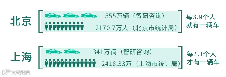 截止2017年6月,北京和上海的平均汽车保有量(数据来源:智研咨询、北京市统计局、上海市统计局)