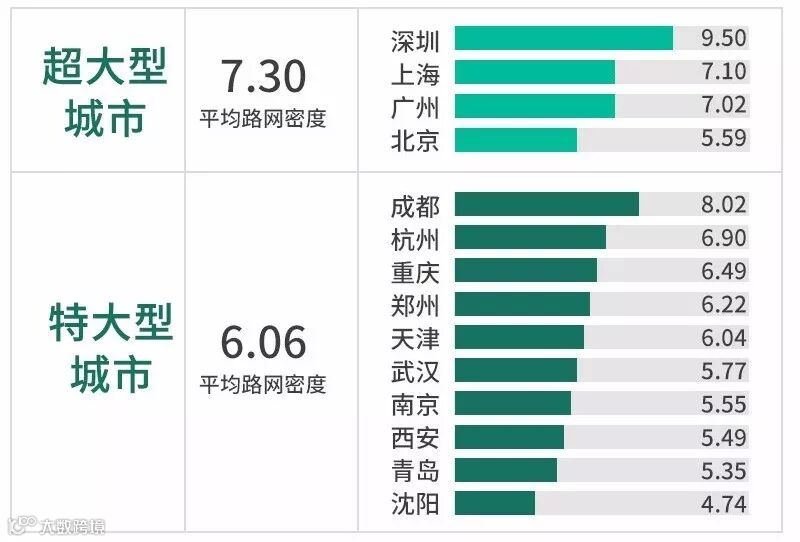 虽然路很宽,但是道路密度却在一线城市中倒数第一,远低于深圳的平均水平。