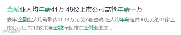 确实是,这些大佬年薪别说百万,千万都不止,也就是因为这些大佬的存在,才拔高金融行业的平均收入。