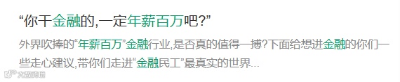 有多少想进金融行业的小伙伴,大多数都是被金融行业吸引去的,有很多同学持着金融行业就是高杠杆,可以加速我们的财富积累。