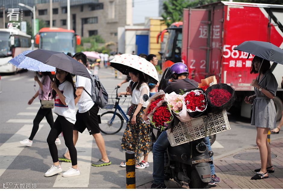 七夕节当天,后厂村路口的送花小哥