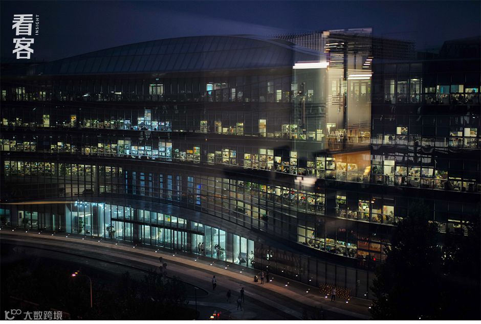 晚上10点,在网易加班的员工。对面的百度大厦依然亮着灯
