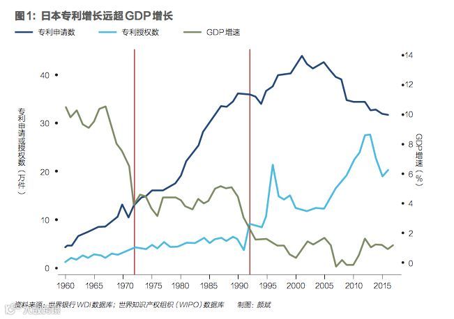 日本有形资产(房地产、股市等)价格泡沫破灭,而无形资产(高质量发明专利、以诺贝尔奖得主为代表的基础研究)仍在快速积累;
