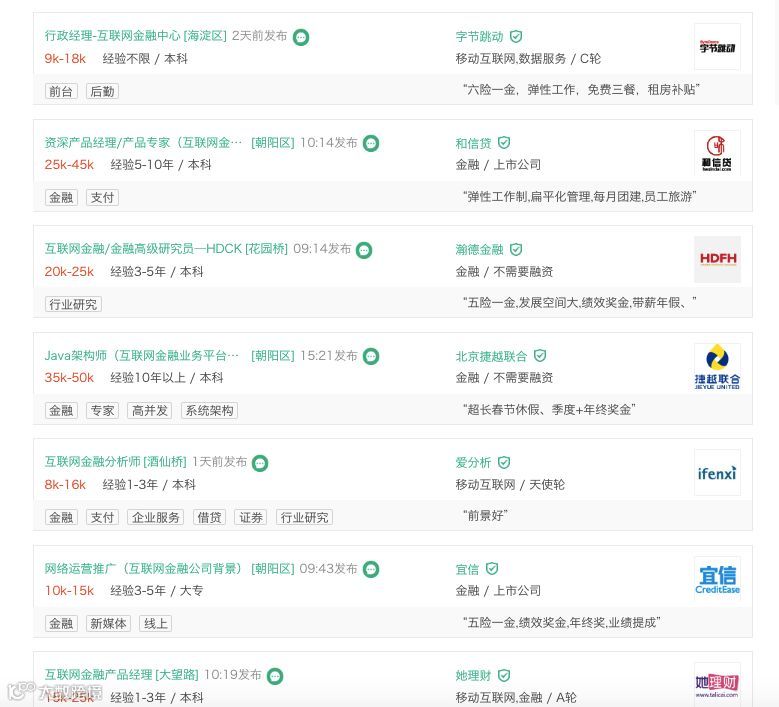 以京东金融为例,互联网金融业务是京东集团六大战略之一,现已成为京东集团增长最快的业务。目前已经建立六大业务板块,分别是供应链金融、消费金融、众筹、财富管理、支付、保险。其中相关的金融业务和传统金融业务有很多相似之处,但底层逻辑又完成了升级,非常值得对计算机、金融学、产品设计有一定的积累的求职者去探索和实践。