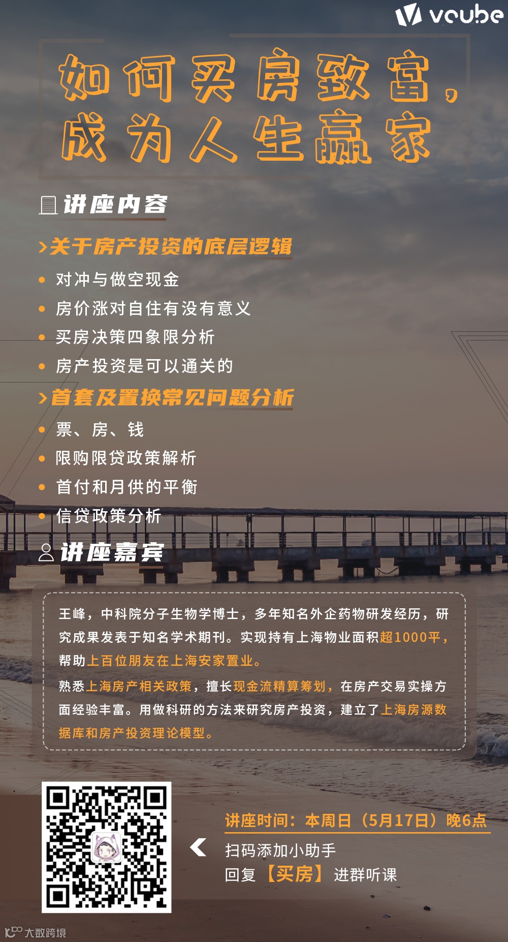 在本周日(5月17日)晚6点,带来的《如何买房致富,成为人生赢家》主题讲座