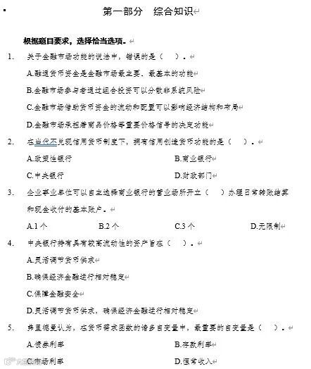 中行历年笔试真题、练习题、讲义