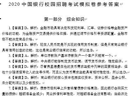 中行2020年知识点讲解、模拟题
