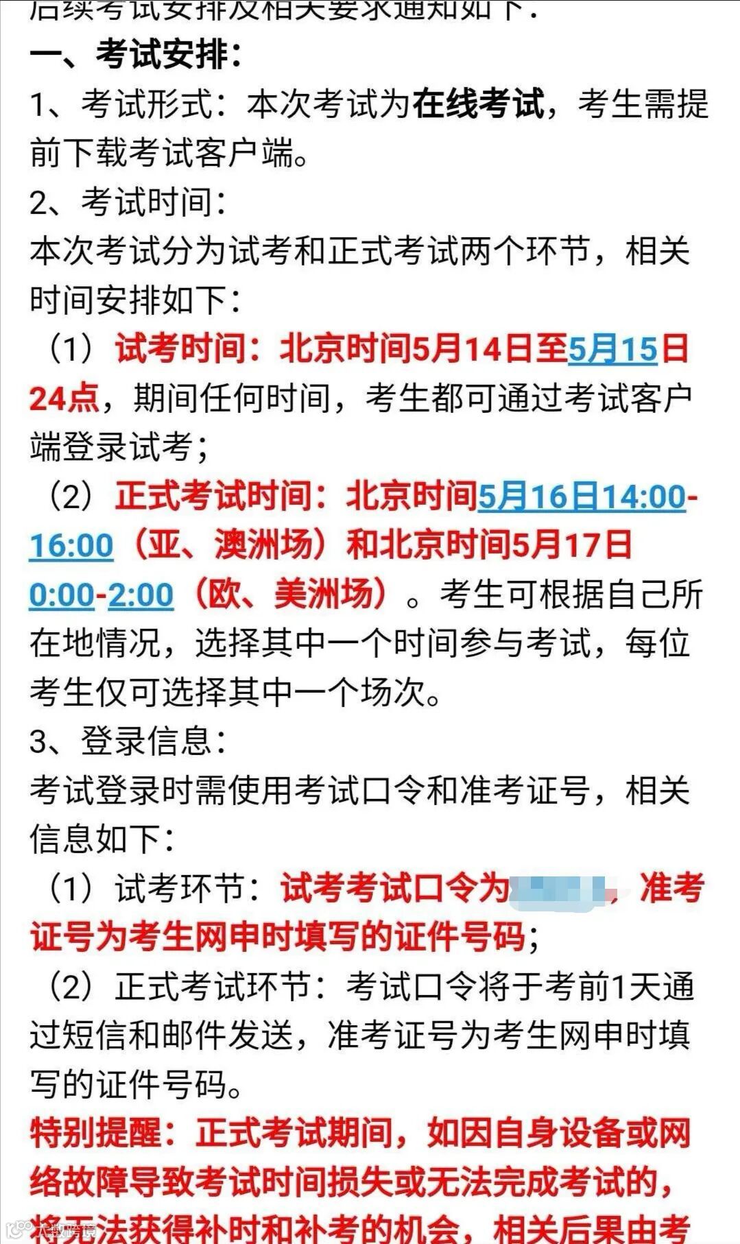 5月13日发通知,5月4日和15日试考,