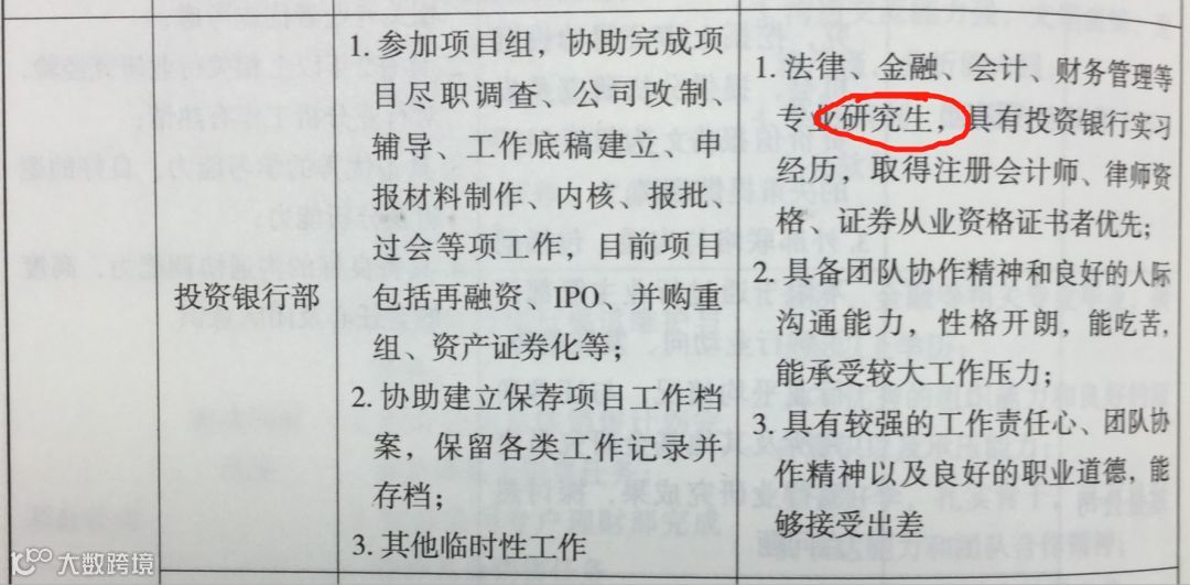 投行同样偏好财务、法律专业,即使非科班出身的要想出类拔萃,也要能掌握与工作内容匹配的金融知识。