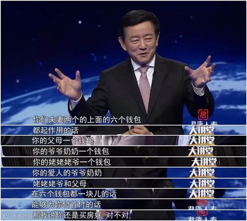 从2015年到2018年,在房价涨了两年多之后,不建议年轻人拿父母积蓄买房的樊老师,在今年再次出现在央视的节目《中国经济大讲堂》中,这次,樊老师不但把自己之前的观点全盘推翻,还提出了一个新的名词:“六个钱包”:不仅提倡啃父母的积蓄,还建议薅爷爷奶奶姥姥姥爷的羊毛,来付首付买房。