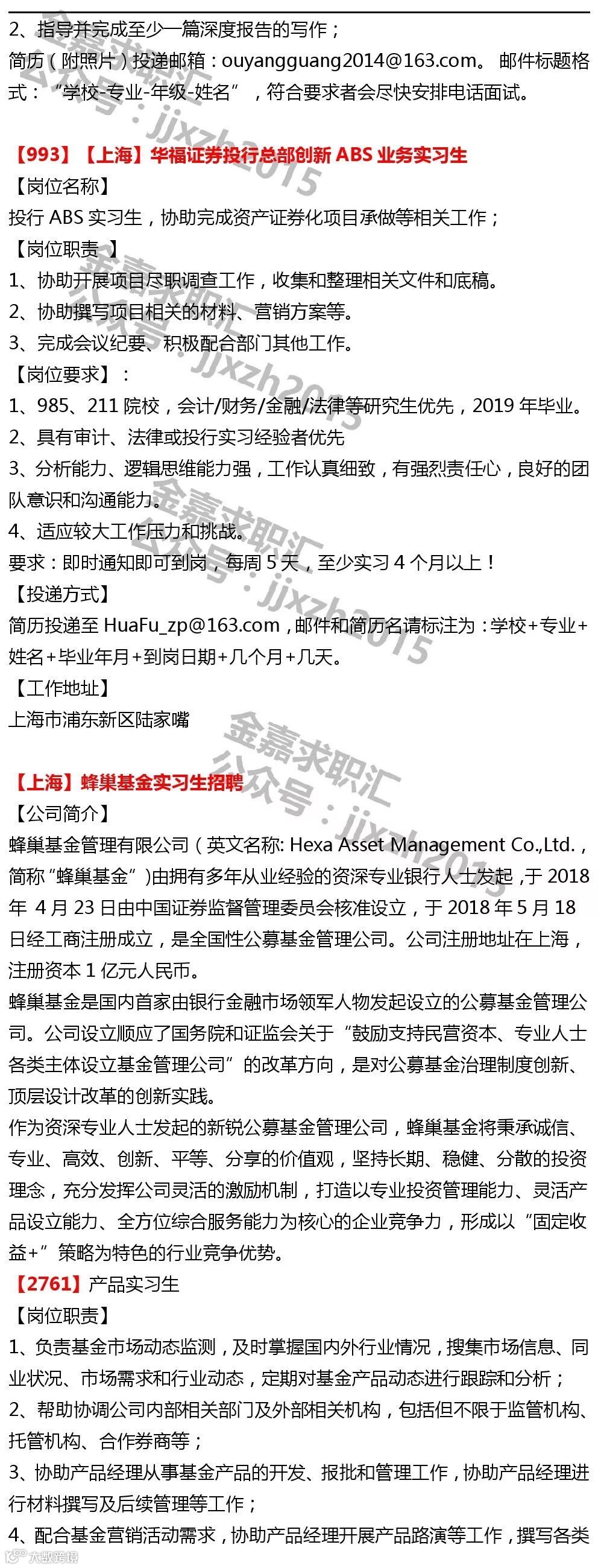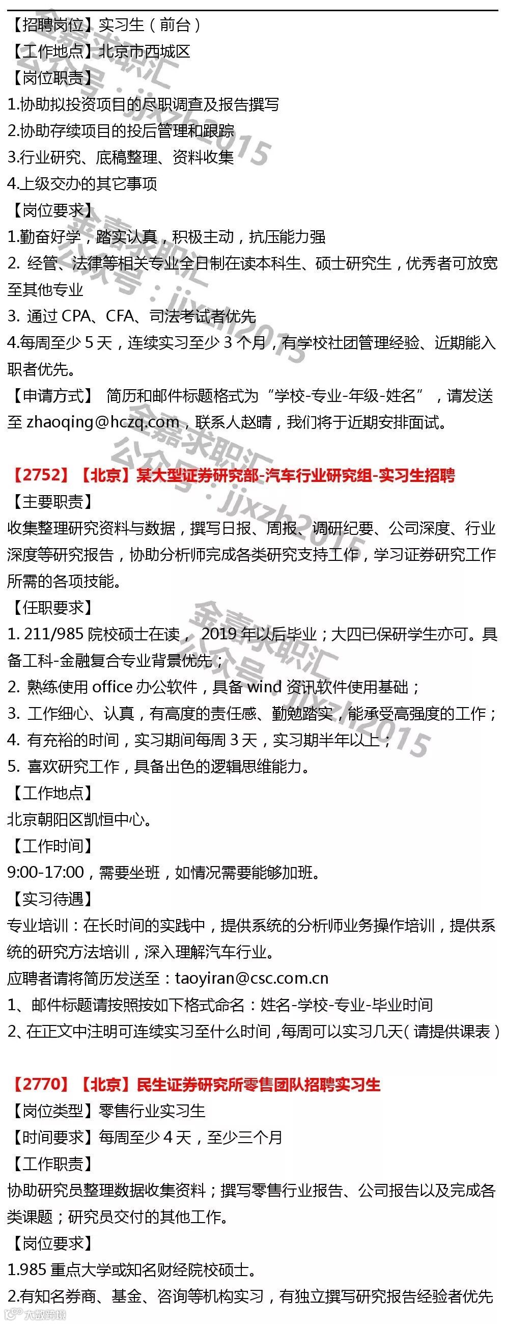 【温馨提示】我们将仍然把相关岗位登录至小金窝网站(www.xiaojinwo.com)中,欢迎各位同学使用简历投递系统,注册后上传或在线填写简历,即可对所有感兴趣的岗位【一键投递】!简历将会【直接投递】至对方邮箱!日报将持续每日更新信息,对于日报中感兴趣的登陆后【搜索职位编号】对近期岗位进行投递。鉴于网站仍在完善阶段,如有问题请联系【1264496831】或【xjw-pm】~