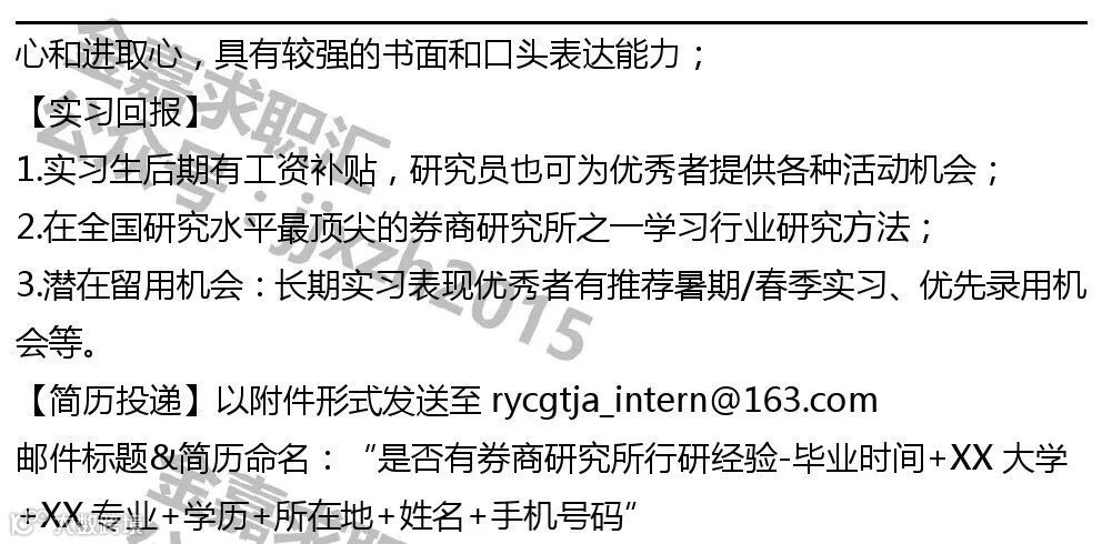 【特别说明】实习日报改版前,我们多次发现求职信息被恶意抄袭或用于贩卖,因此建立了相关的投递系统来规避此类现象的发生,同时也希望为同学们提供更统一标准的服务。我们承认目前我们的IT系统还比较弱,存在各方面的不足,但我们郑重保证和承诺所有过去和未来通过我们系统进行投递的简历均直接投递到了用人单位预留的邮箱中,金融小伙伴未做任何截留和收费处理。鉴于上述处理对投递简历的同学们造成了相关困扰,我们决定即日起恢复原版本,以正视听。