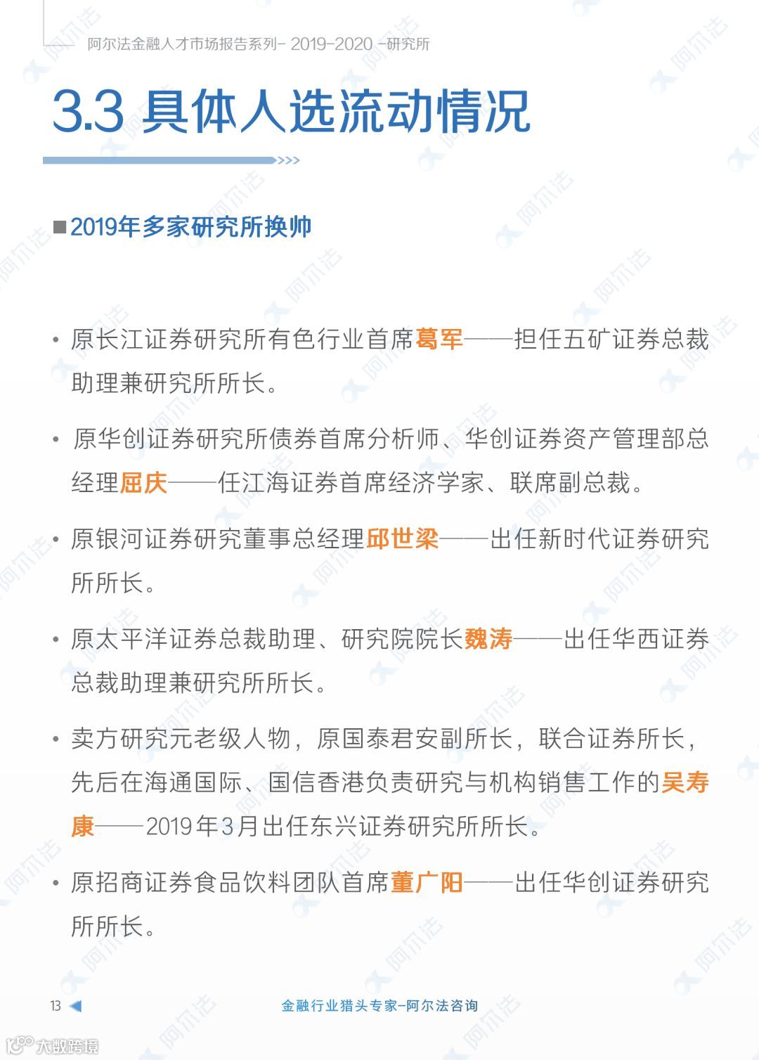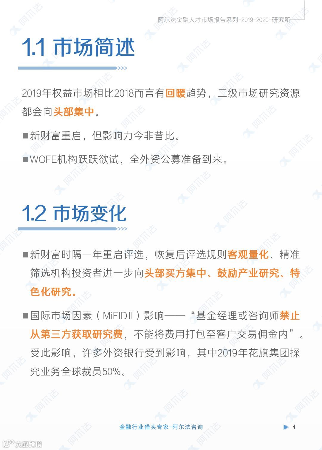 报告精选了“人才流向”、“招聘热点”、“部门调整”、“薪酬激励”等核心内容。纵览2019,预测2020,阿尔法顾问们诚意献上,力求让您在6分钟时间内,即可通过此份报告,将研究所领域年度市场和人才信息盈握掌中。