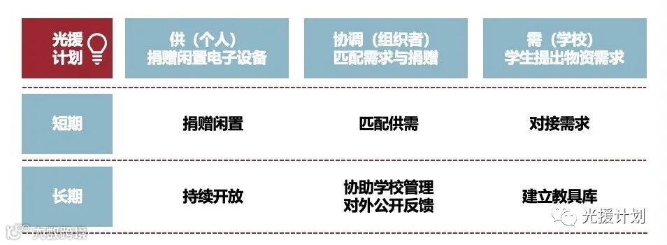 我们期待短期内通过援助电子设备,为有需要的孩子们解决疫情中上网课难的燃眉之急,之后计划长期协助学校建立电子教具库,疫情之后继续支持教学。