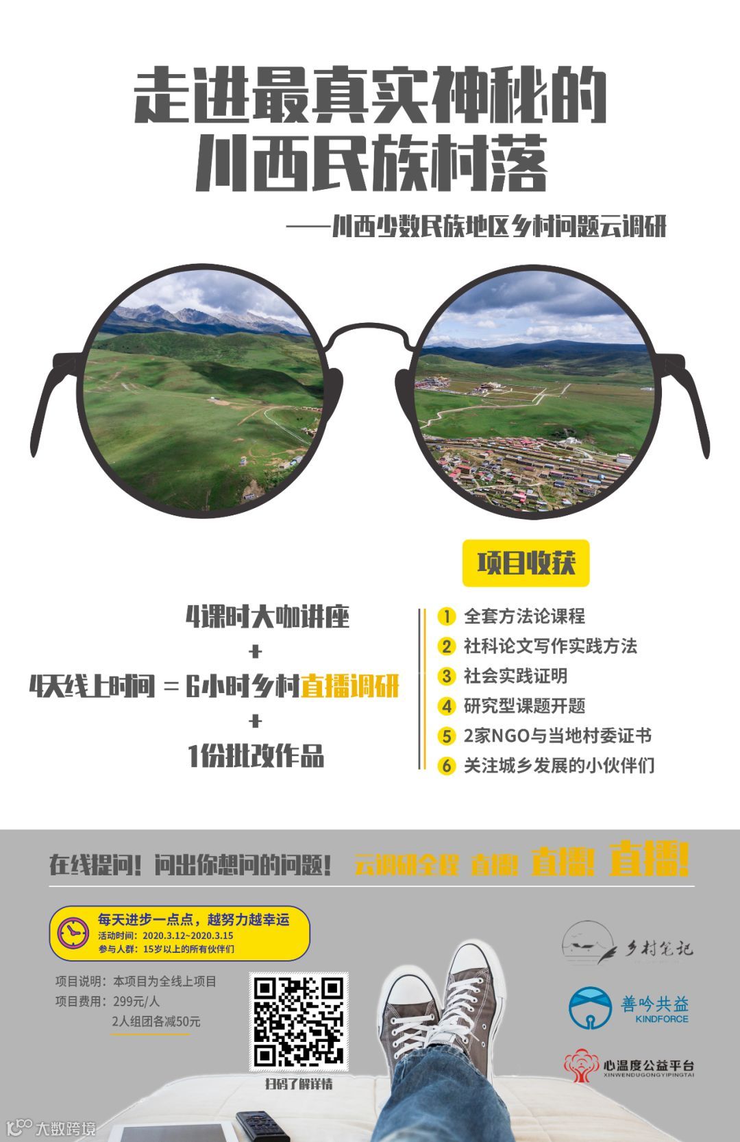 一次乡村云调研 = 全套方法论课程 + 社会实践证明 + 研究型课题开题 + 两家NGO两个村委证书+ 全部抵扣线下乡村行 + 关注城乡发展的小伙伴们!