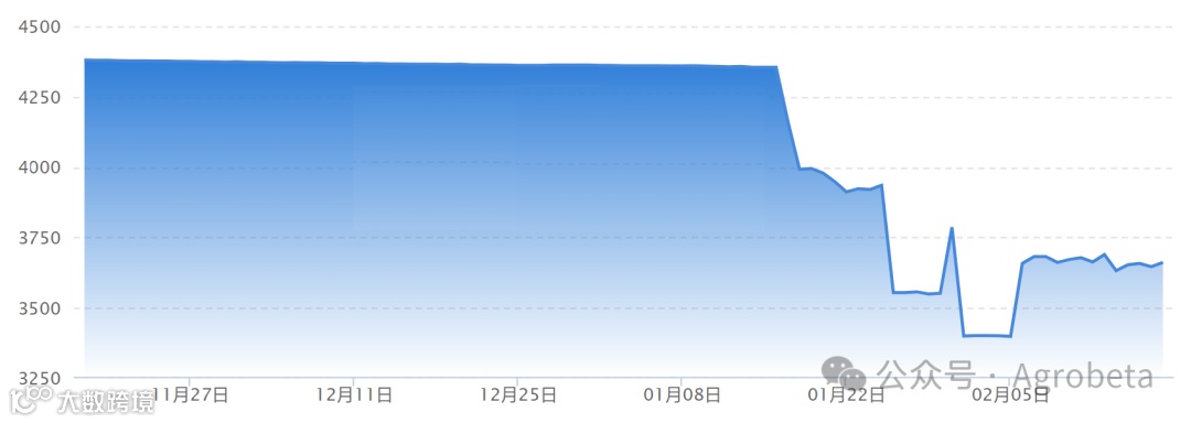 导读:根据各原料价格平台,采集样本价格后计算近三个月(20231118-20240218)全国玉米、豆粕价格波动图。