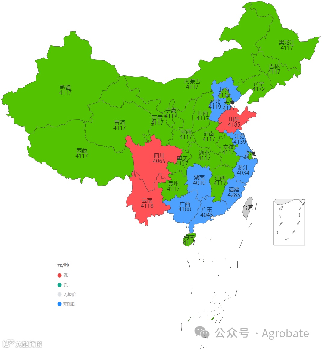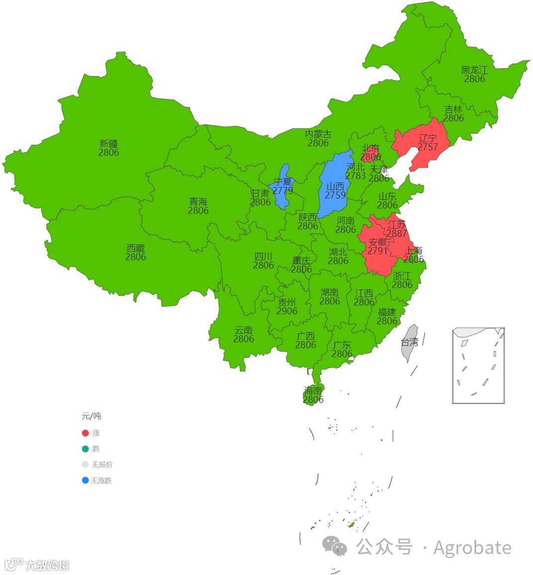 导读:按行政省采集不同样本点价格信息,计算玉米、豆粕大宗原料当日采购均价。 信息来自中国饲料行业信息网、Mysteel、百度爱采购等。统计时间不同会造成当日价格有小幅差异,供参考。