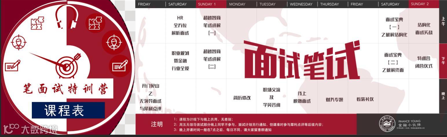 继承学徒计划核心体系,以简历、笔试、面试为突破口,全真模拟金融行业求职技能。全方位、多元化、理论实践相结合的培养模式,障碍逐个击破,层层提升,让你在面试场上所向披靡,OFFER拿到手软!