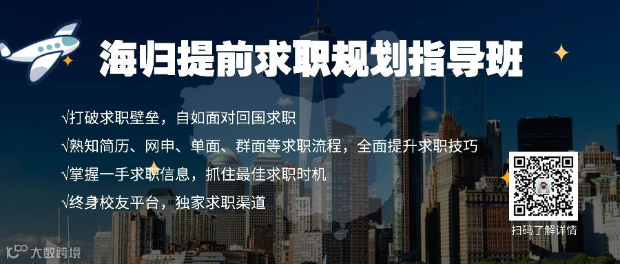 为了帮助即将/正在回国求职的海归同学们顺利求职,金融小伙伴为大家精心准备了【海归求职规划指导班】