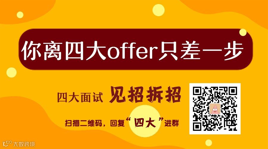 今年四大case面也出新招数,比如KPMG增加了一轮小组讨论,PwC的10秒内Dem Beat等等。关于今年最新考题拆解,请关注本周六晚7点的《你离四大offer只差一步!》讲座!
