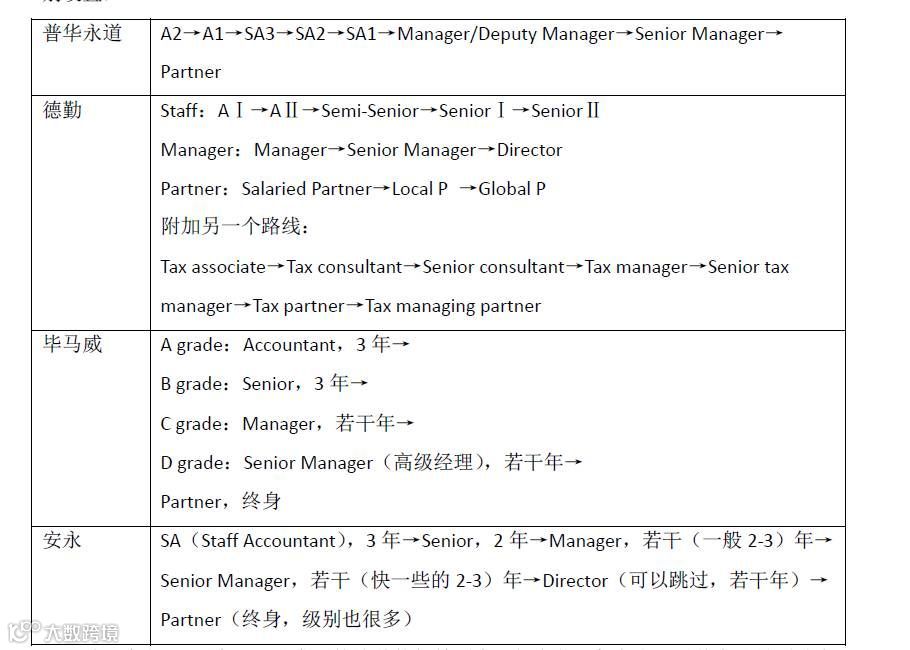 四大明朗的晋升渠道,广阔的发展前景,如果稳定发展,不出10年就有晋升为Partner的可能,这些都是让我们无法拒绝的理由。