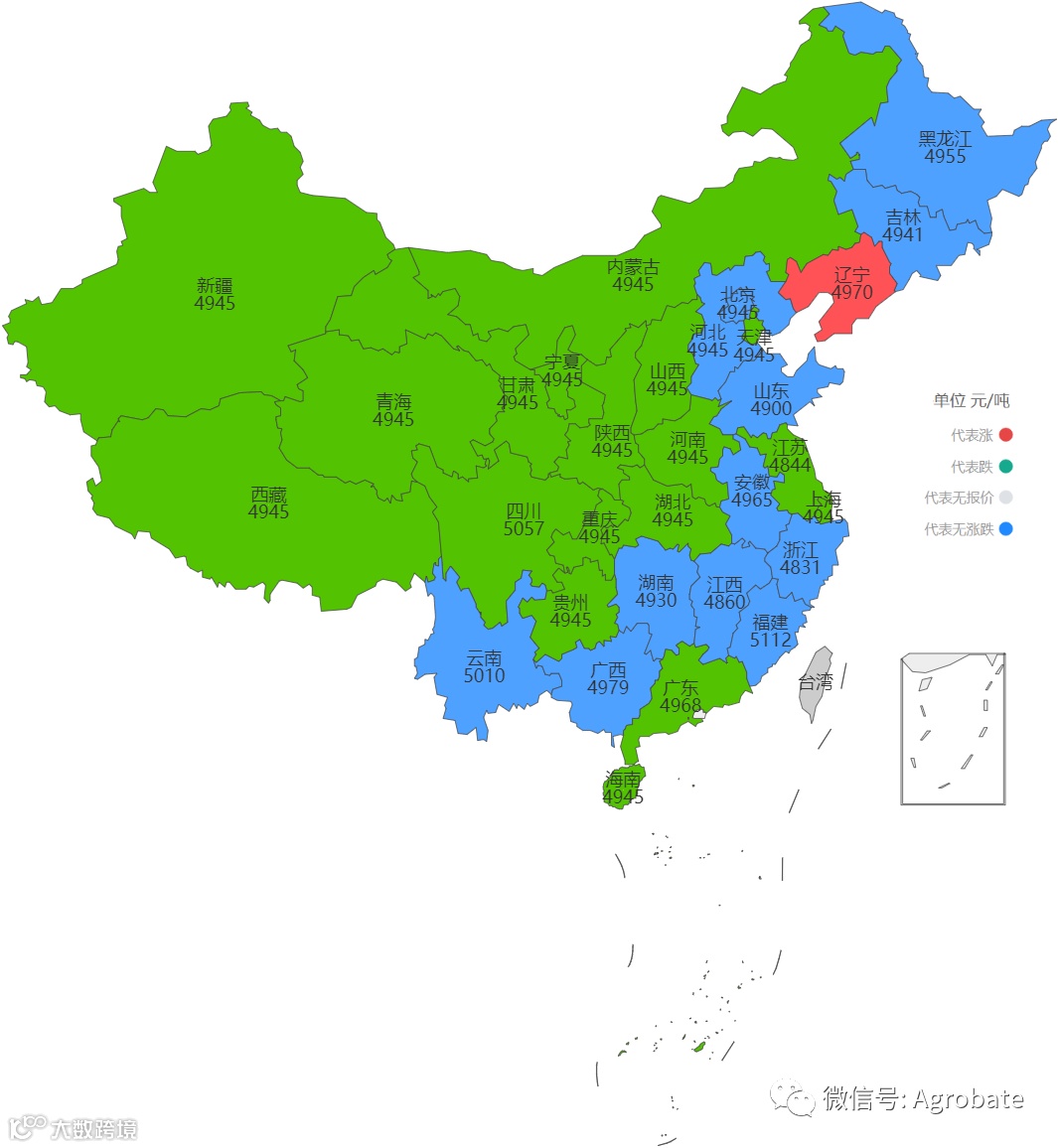 导读:提示按行政省采集不同样本点价格信息,计算玉米、豆粕大宗原料当日采购均价。 供参考。