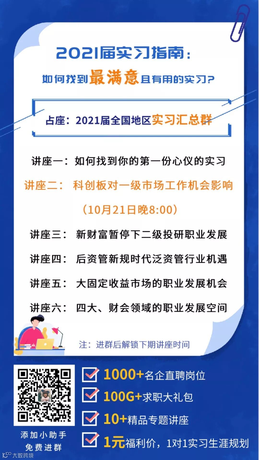 为了帮助同学们在实习前对固定收益市场有更多的了解,更多地从业界获知固定收益投研的职业发展,将在实习群给大家做专题讲座,帮助你抓住更多的机会!