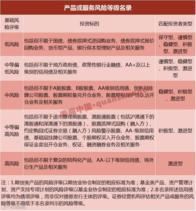 一是投资者的分类:明确了投资者可按其风险承受能力由低至高至少划分为五类:即保守型、谨慎型、稳健型、积极型和激进型。