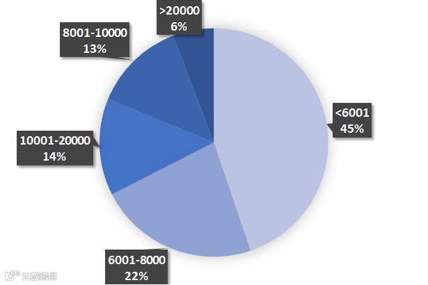 80、90后海归税后月收入(单位:元)