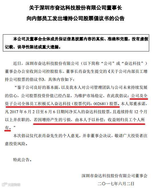 在这个世界上没有无缘无故的爱,也没有无缘无故的恨,大股东承诺兜底公然怂恿员工及其子公司积极买入股票背后动机值得警惕。